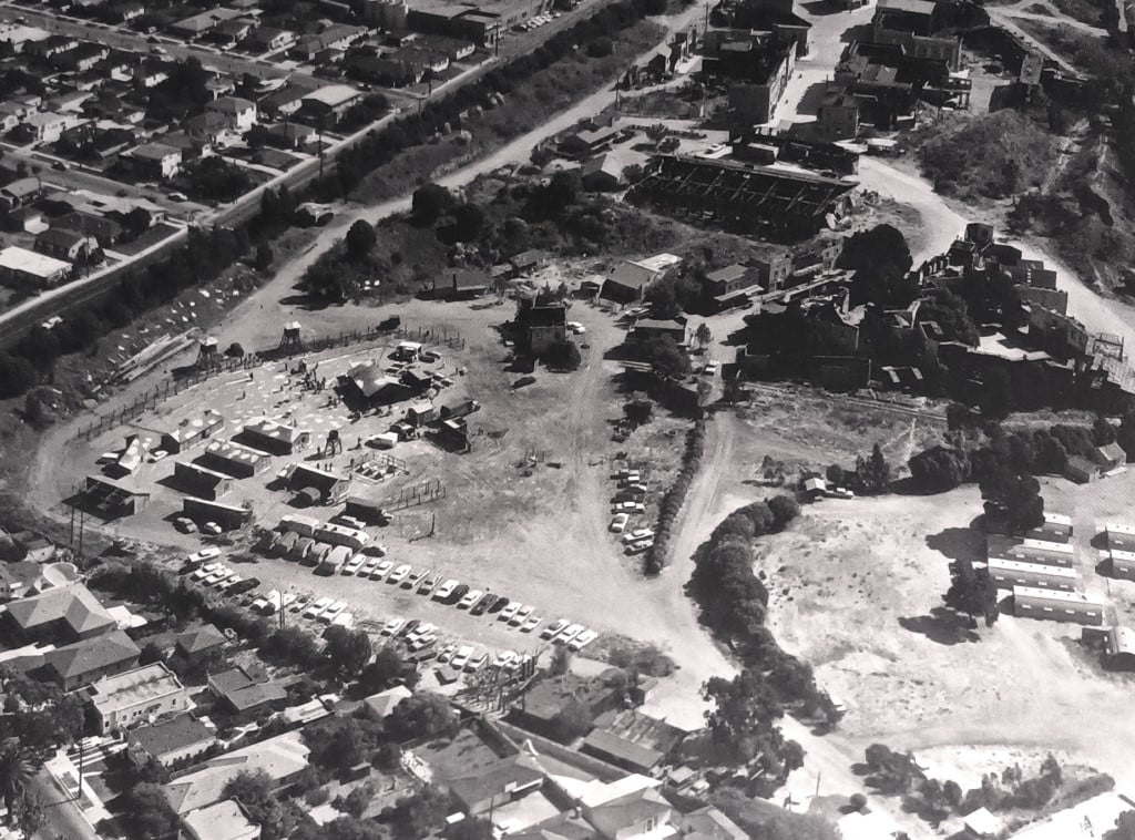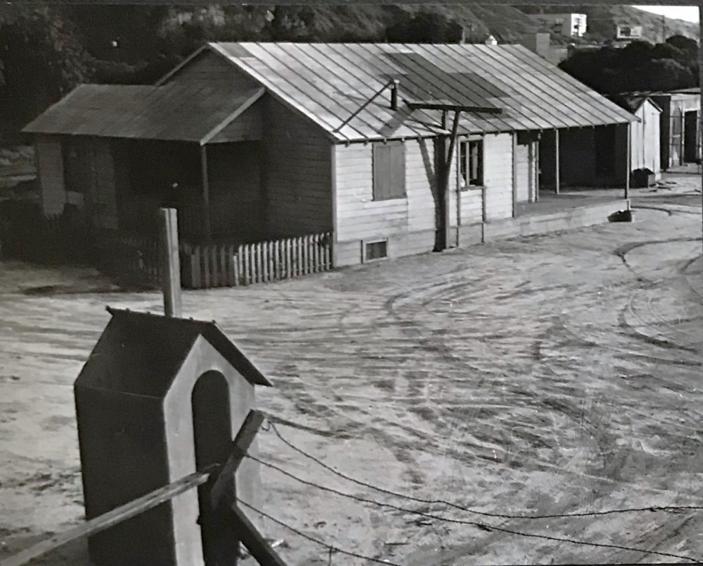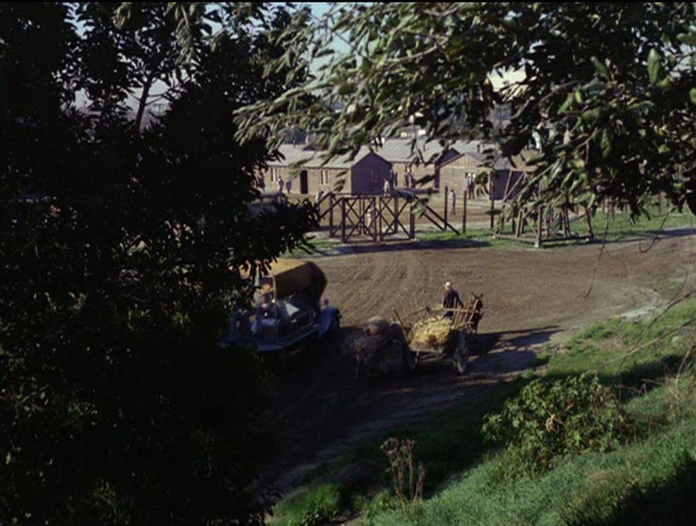 In this overview, you see two guard towers at the main gate. A third would later be added the left end of the barb wire fence. Marion Davies’ dressing room is located over there and Hogan’s Heroes used her old make up facility for touch- ups. I would rediscover this mobile heirloom in 2021, after hiding behind it in 1972. Camp Henderson is the Quonset Hut section of buildings on the right side of this picture. These two legendary movie sets often filmed side by side in the real-TV Land.