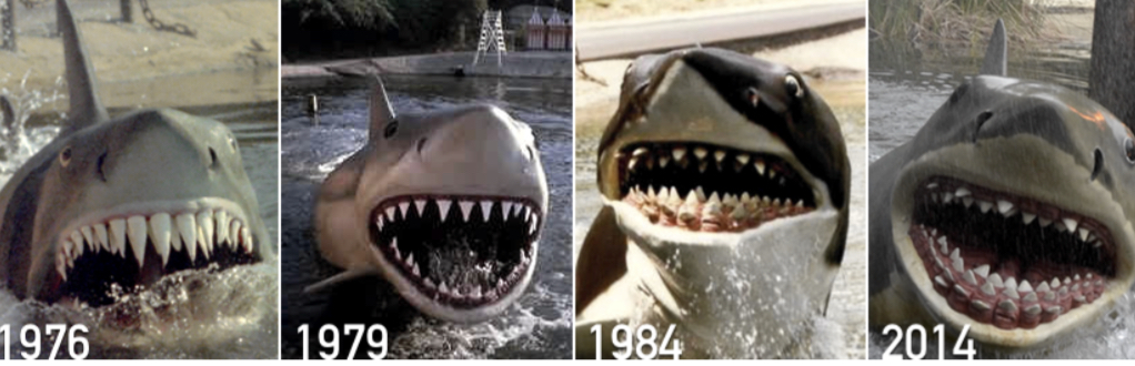 The teeth on the original Jaws are hilarious and terrifying at the same time.