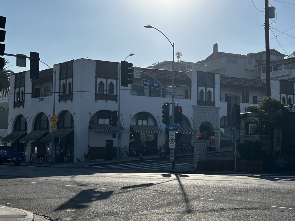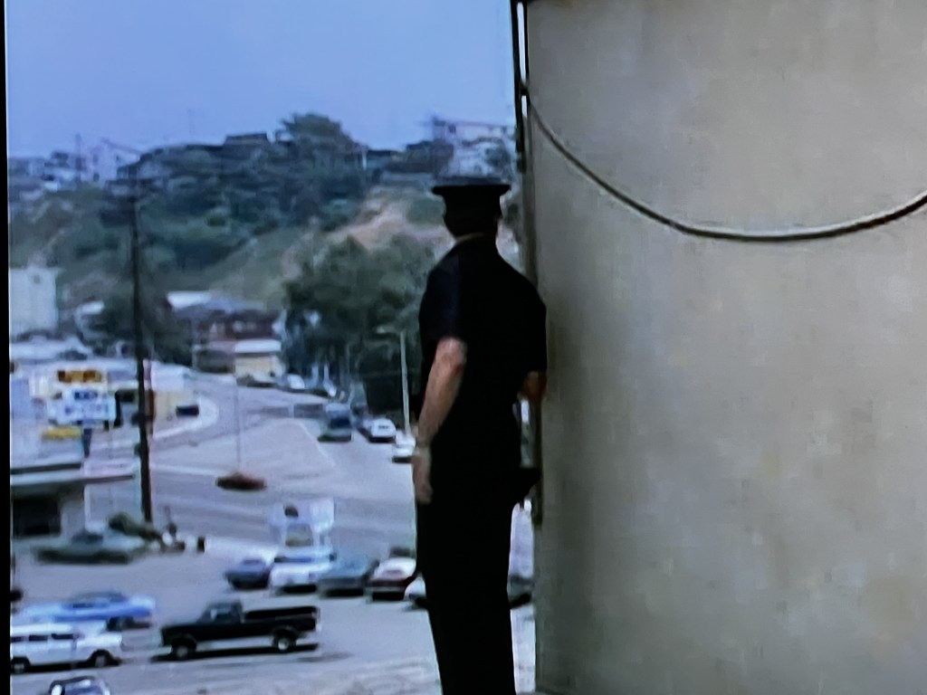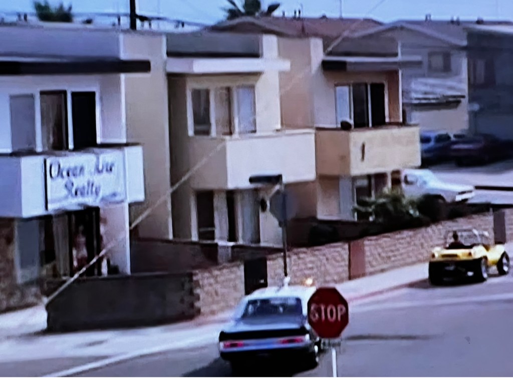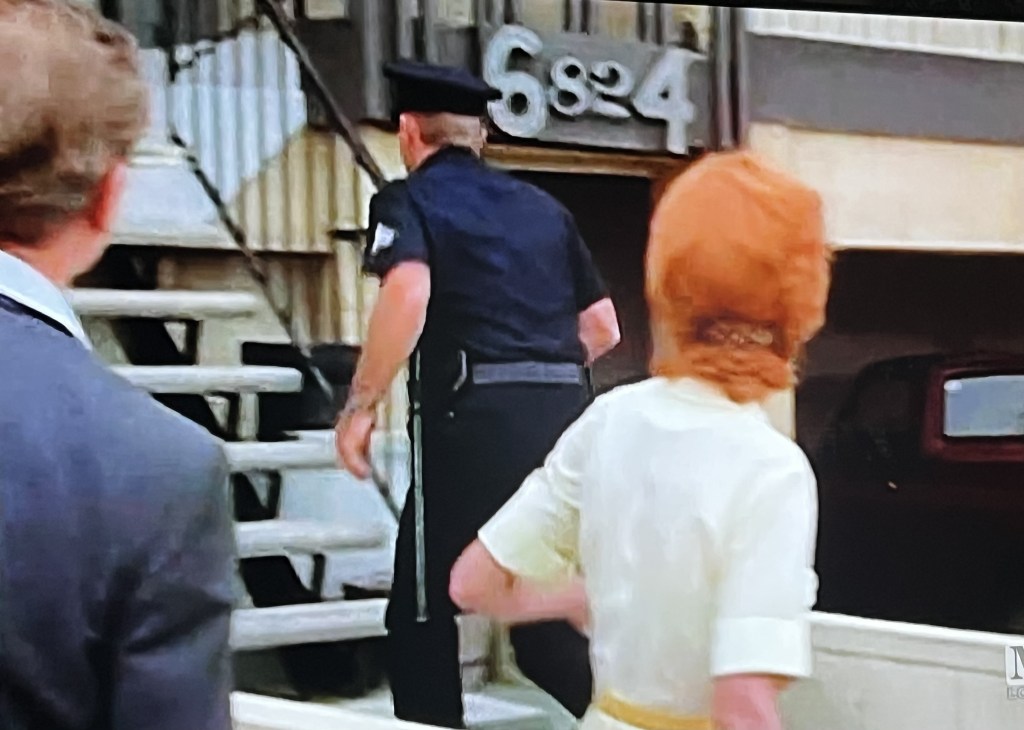 The white apartment behind The Shack Restaurant is the rooftop Officers Reed and Malloy are searching. The white “box” on the roof is the stairway up to this roof.