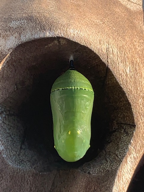 My multi-legged friend now sprouted the prettiest orange and black pair of wings anyone would love to have attached to them. After working its way out of a now darkened color vestibule no longer supporting this transition, my new friend was testing its wings out before finally commencing on yet another journey in life.
