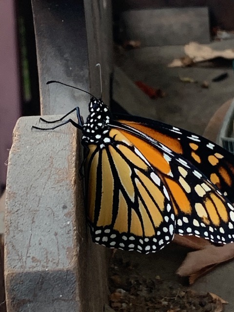 A Caterpillar has evolved into A Monarch Butterfly…Here testing its wings before taking flight.