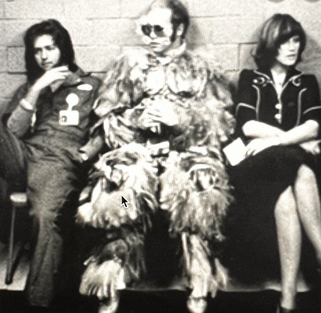 Elton graduated from vans, station wagons and cookie cutter motels and voila… the song Holiday Inn in 1971, Madman Across the Water. In the spring of 72′ the band moved up to a Greyhound Bus, plowing from one college campus to another.