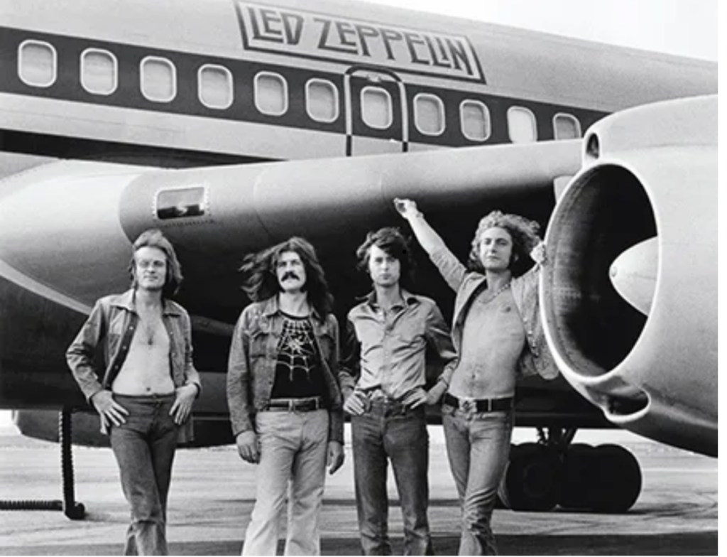 Zeppelin became indelibly associated with the Starship when the band posed with the plane in Bob Gruen’s iconic 1973 portrait. Bob explains,” this sums up the excess and decadence of the 70’s, the fact that here are these guys-they don’t even have buttons on their shirts- and they have their own plane!”