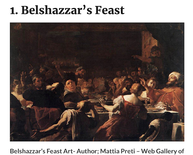 1-Belshazzar’s Feast, the ruling co-agent of Babylon, through a party for a thousand of his closest friends. Silver Goblets taken from Jerusalem after the conquer were used to sip beer from these sacred vessels. This party could easily be recreated on the lot. I’ve been on sets like this.