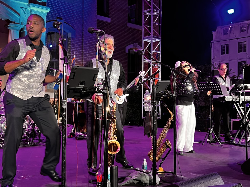 This band performed music from Earth,Wind and Fire, Tower of Power and opened with Kool and the Gang’s Hollywood Swinging. A really tight band, rich in sound that carried through the entire backlot.