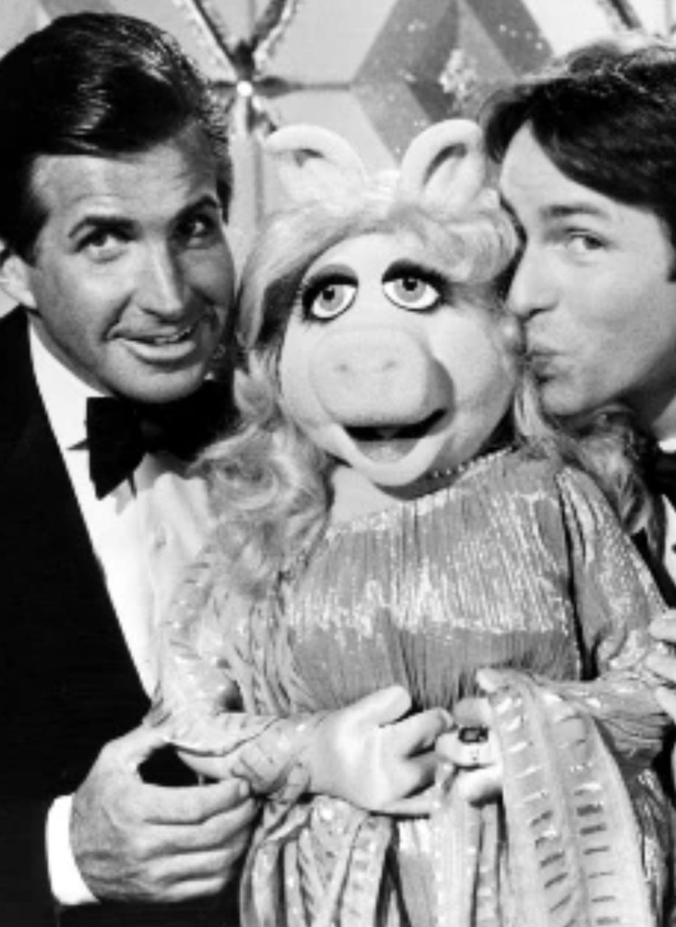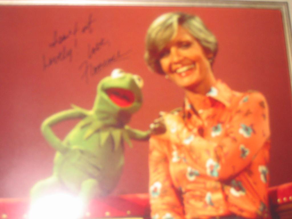 Bob Hope and similar looking Muppet…”Bob ,we have the same nose.” Right side -Kermit fast talking with a legend!