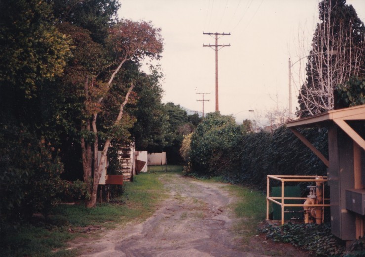 This utility road sits directly behind The Bewitched home on the left, and the studio barbed wire ivy covered fence on the right– Oak Street.