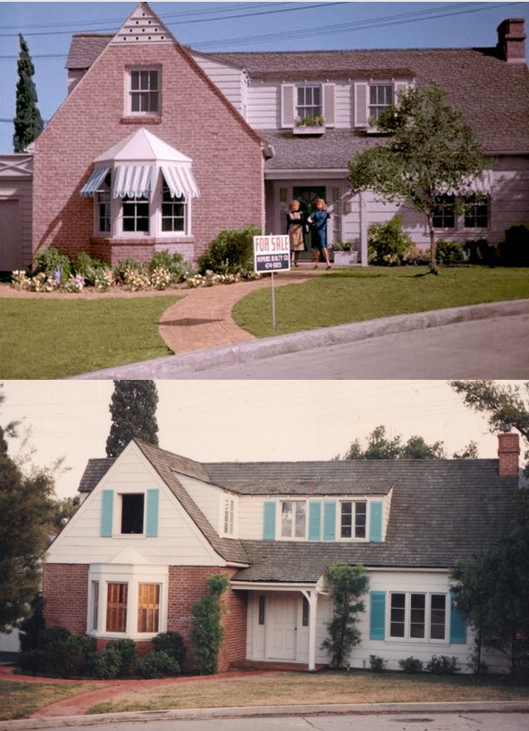 I love this studio because it was nestled in with real life normal people living everyday life with a balcony view of the studio. Maureen’s apartment growing up was just outside MGM’s fences. Sequence of pics from off lot, behind house and front door. Picture one of Bewitched house from Oak St. The address used for this fictitious house is 1164 Morning Glory Circle.