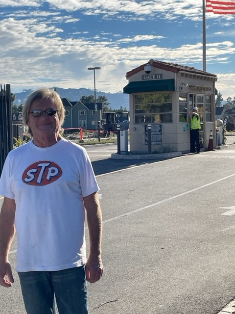 A couple of months back, Maureen and I came to the guard shack with high hopes of sharing a little past history and perhaps getting a snapshot or two. We were appropriately dressed. She said I looked like I just stepped out of “Once Upon a Time in Hollywood,” and she was wearing her “C’mon Get Happy” Partridge Family t-shirt. We came to pay a final visit to Columbia Ranch and show our respects and we ended up being the center a “Code 3.” The Burbank Police showed up after an irate guard threw a frenzy as we took pictures at the entrance.