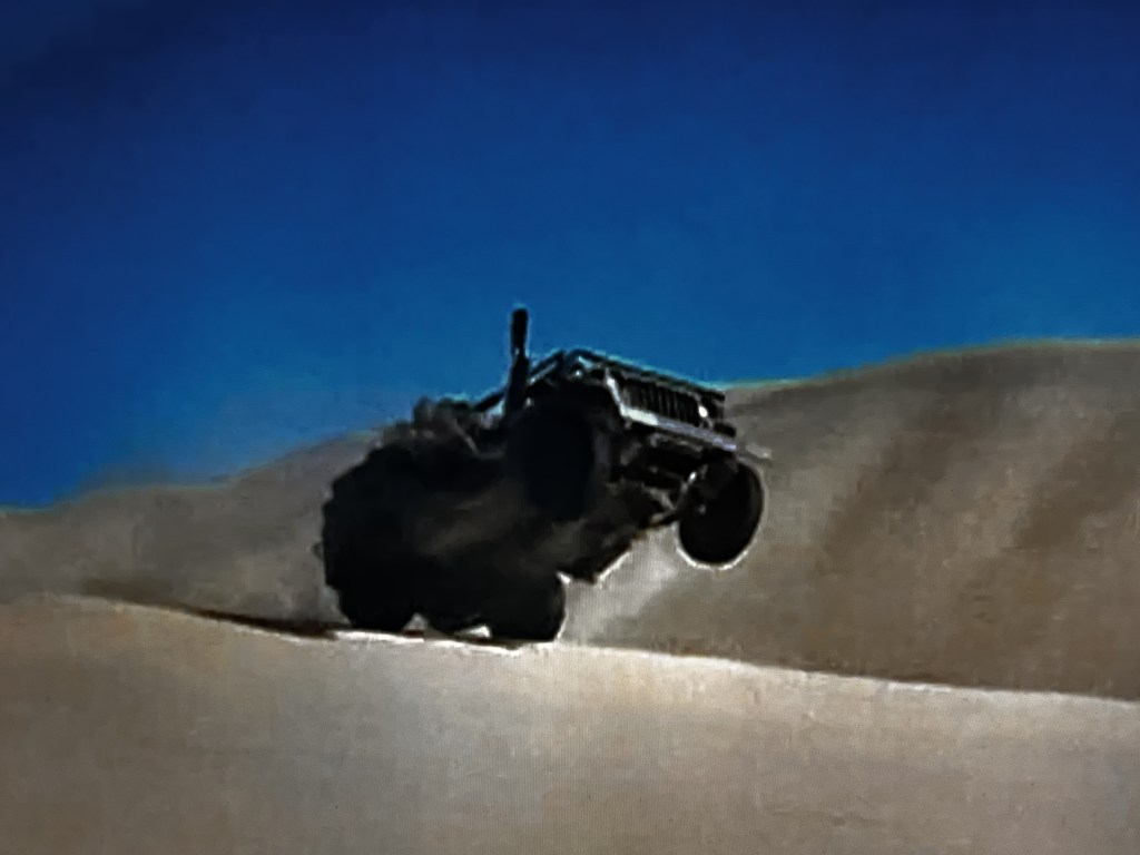 In this shootout with these two jeeps, very tight maneuvering is needed. The drivers must avoid crashing. It is a tight squeeze at high speed.