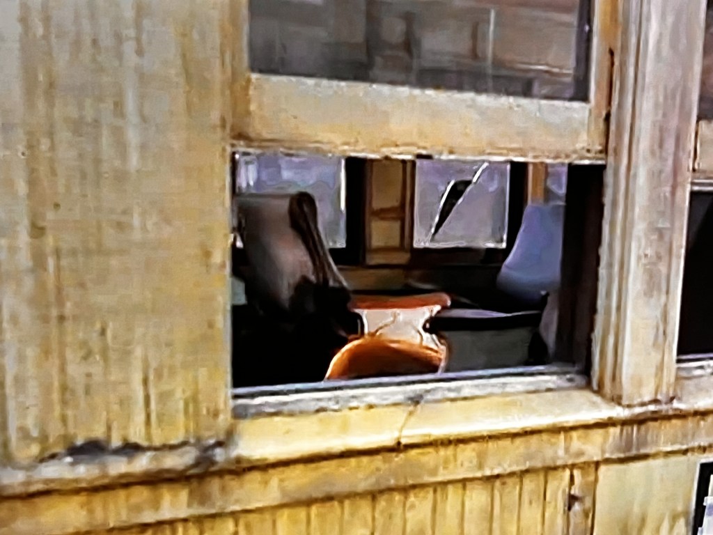 As Germans guard exterior-Sam Troy sneaks his way in-Actual train interior.