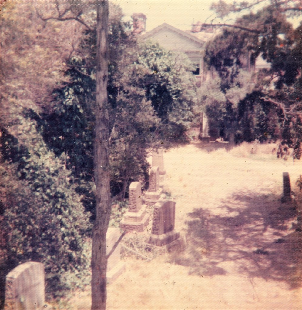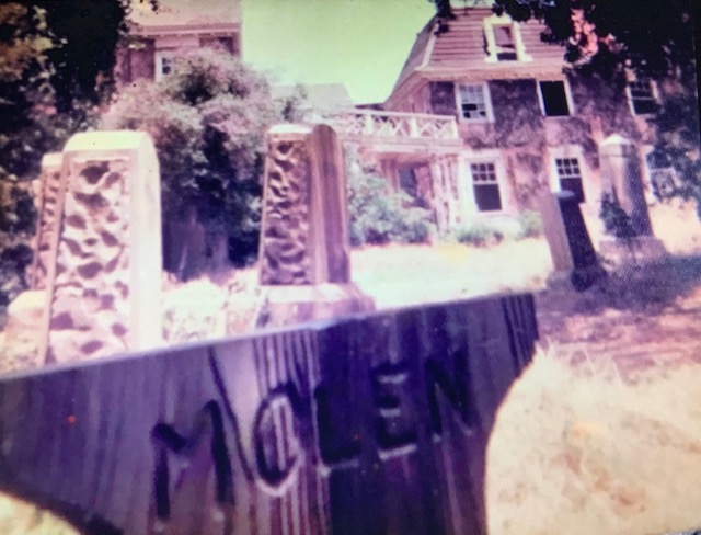 These gravestones are the same ones we hid behind in the cemetery at the original Hole in the Fence… our very first trespass on this lot! Molen is my old friend, yet his grave is in its third location. He is coming out of a gig all the way over at New York Street. He and several other stones provided cover in the climactic Chuck Connors/Charlton Heston shoot out in Soylent Green. We hid behind these things. The Rifleman and The Omega Man participated in a gun battle shootout. They concluded the battle through the narrow streets and alleys of New York. Then, they moved through this mobile cemetery.
