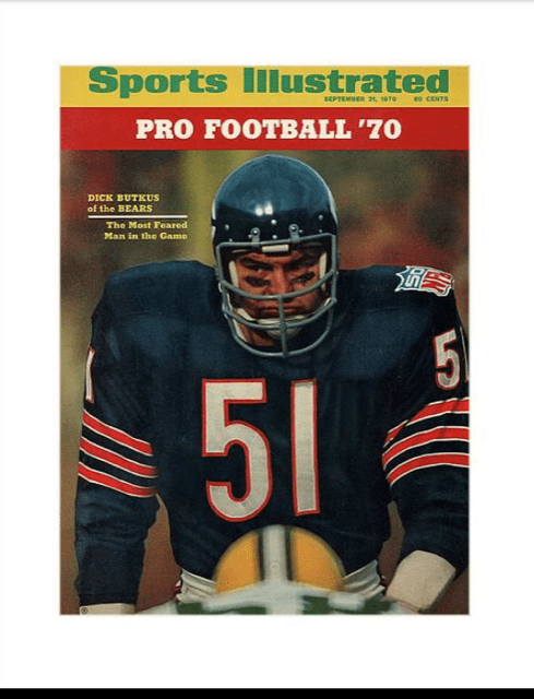 At my house, my bedroom door and my sister’s door are open together at times. Her poster of David Cassidy smiling looks directly at my poster of Dick Butkus growling. He looks like the Giant “Bear” that he is. It’s obvious Dick wants to wipe that smile off silly boy’s face…