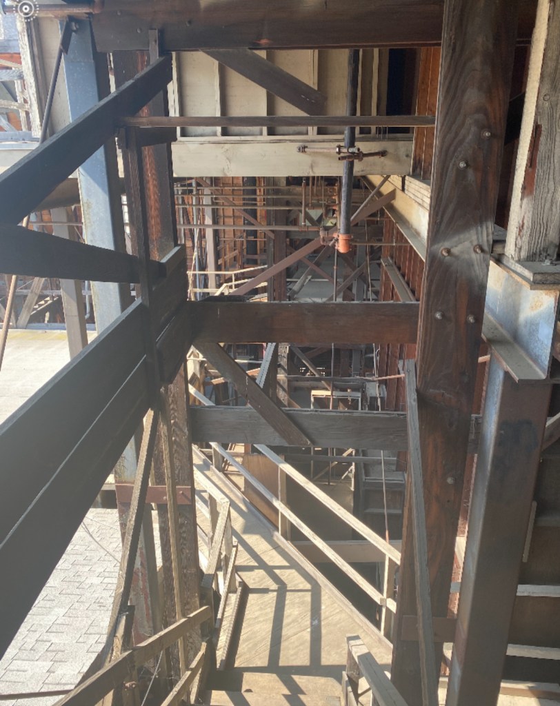 A cover up of a building that has been a centerpiece of the backlot. Trams always stop here.