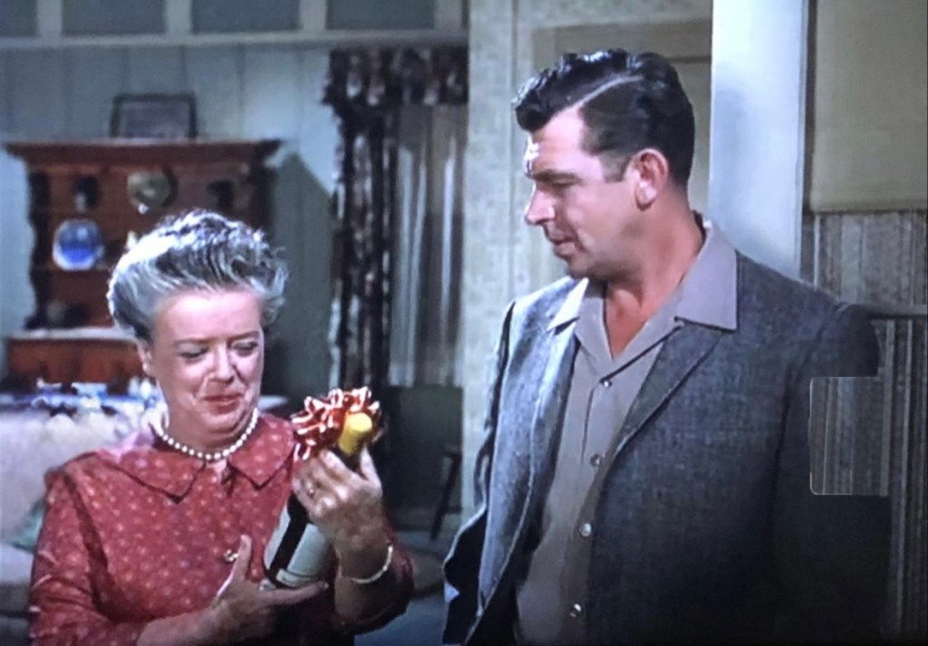 Back to Frank Smith, it turns out this character is played by actor Charles Aidman. In this period, Charles is also in several Twilight Zone episodes just down the road at MGM. In this Andy Griffith episode, he brings a bottle of wine to dinner at Sheriff Taylor’s house. Mayberry is a “dry county,” just ask Otis Campbell. Just some food for thought as we say our before dinner prayers.
