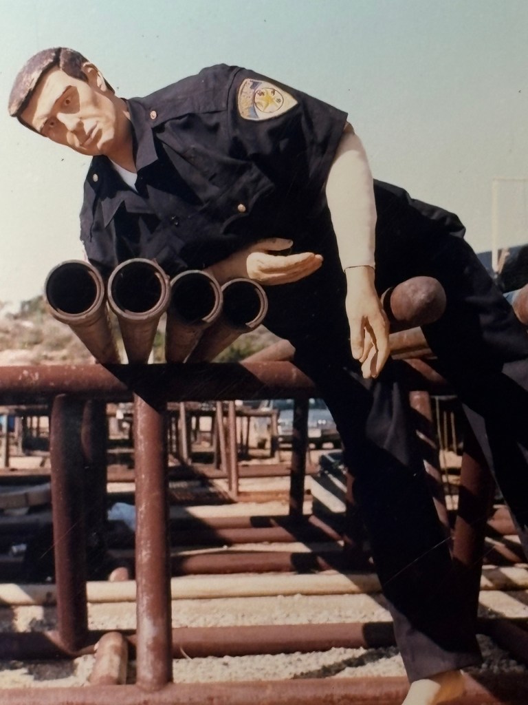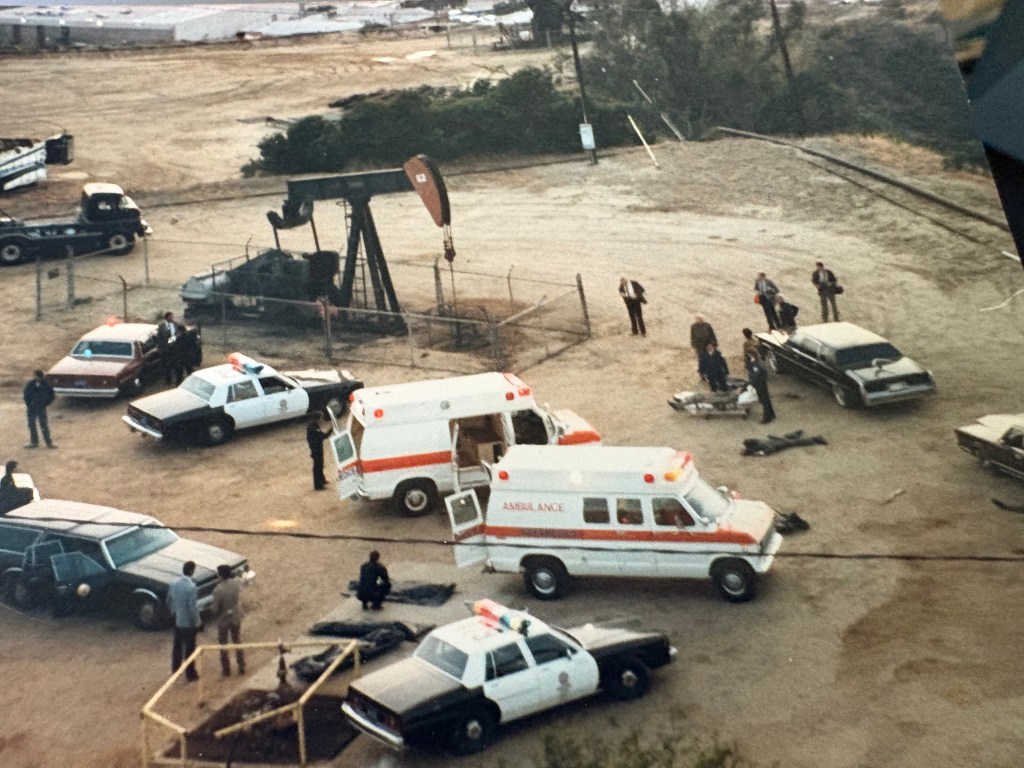 I discovered this production while mountain biking up in the oilfields above Culver City.I had just got home from my job at that time as a Tram Driver for Universal’s Studio Tour. I gave four tram tours earlier in the day but nothing going on at Universal today was a cool as this set I rolled up on. Fortunately, I had a camera with me. At first I wasn’t sure what I was watching until I saw all the show cards in the Transportation equipment.