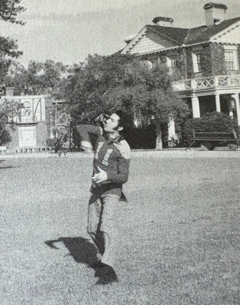This was the first T.B.S picture on the roll of 36 pics. I had just got this camera, a Minolta, for Christmas. This happens to be Christmas Day 1975. The shutter snapped, then the roof snapped louder. My shiny- fancy camera got a big dent but we both survived. When I caught up to my friends, we went driving around in costume. The Wantons had wardrobe inside it, hats and coats for all of us. The car was a stick, I wasn’t old enough to drive and I nearly crashed into the Walton House. All this- while you folks were watching ‘A Walton Christmas’ episode on television.