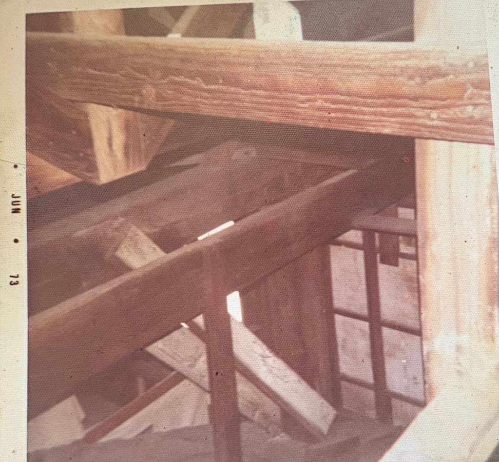 Early version of Building 29. A tower would be added and the entire front was refaced over the old face. That created a maze of passages that could even confuse mice. Once you train yourself inside the interior on what passage connects to what-then try it at night in the pitch dark. A hidden ladder is a big key to reach this overhang we happily call….HOME.
