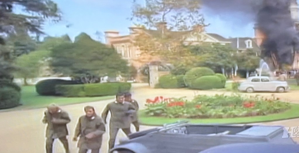 I had to take advantage of my “one minute in the sunshine.” As Charles wondered off alone I pulled up alongside him. “I’m sure glad you survived that chateau assault in the Dirty Dozen. He gave me this stare as I kept rambling on, “that set was on the backlot in the MGM facility in the U.K I believe?” as he responds. “The entire chateau was a set, we destroyed it”. “I’m a huge Lee Marvin fan so you two are quite the pair of survivors.”