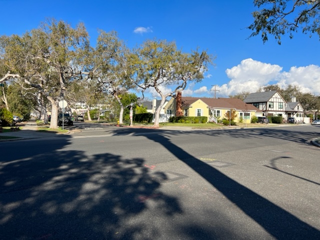 Even today you can stumble across The Goldbergs grabbing park scenes a short walk from Sony. As for this park, I attempted to match the Pyle scenes to their exact location 58 years later. The trees are much larger in the park, but the original palm trees still frame the outer edge.The center of the park has a stone, circular rose planter, or it was anyways. Now it’s got a stone art piece as the center replacing the roses. Hedges surrounding this centerpiece have been removed.The houses as you may expect have been modified or completely torn down for more opulent structures. This is considered an expensive area so remodels happen often. But the park itself has not changed hardly at all. It’s a park I grew up in and still frequent.