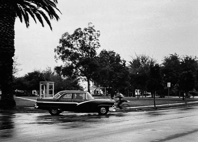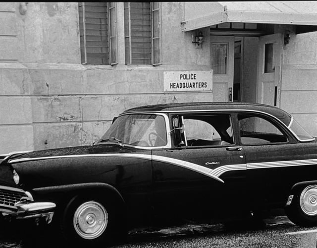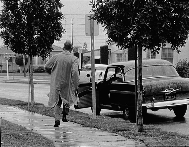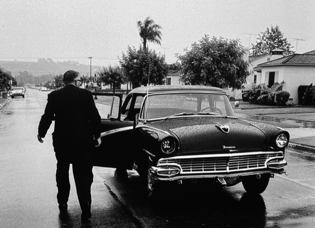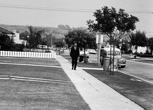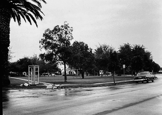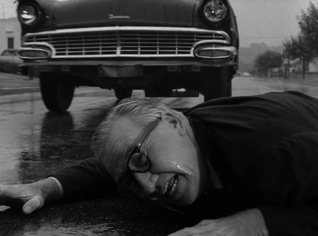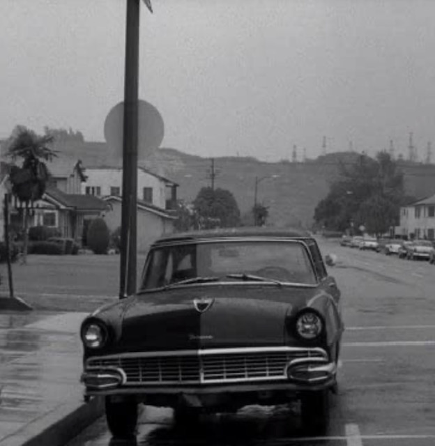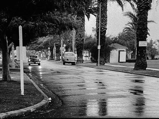 From the looks of the gray sky and wet streets, this was filmed on a rainy day.Special Effects added their own for dramatic cause as the car picks up Ed off the streets to be turned in to authorities. This location is just outside MGM Studios and its Culver Blvd gate. This set is just a hop, skip, and jump away from The Twilight Zone stages at MGM. Back in the day, MGM had a West, East, and South Gate. Sony added a North Gate on Washington Blvd. When shows go “On Location”-they hate to travel very far.Especially television with its tight schedules tighter budgets.