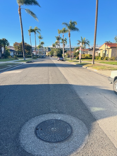Same spot- way different today. The manhole lid is the constant. Sony added parking structures that blocked the stages and the Scenic Art Building on Le Bourget Ave.