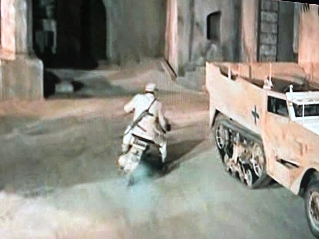 I recognize equipment that was on Lot 2…now at Lot 3. The backlot world is interchangeable with many moving parts, literally. The Rat Patrol moves their squad back and forth down Overland, the public street that connects these lots, depending on what village or train station they are attacking. Combat did the same, as did Garrison’s Gorillas, starring Ron Harper.