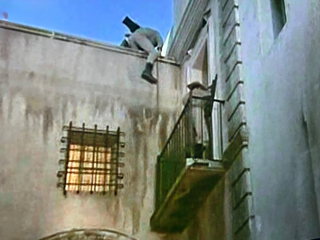 This balcony dates back to…Romeo and Juliet, the 1936 MGM Classic, Directed by George Cukor. I had a fort inside the ledge Christopher George happens to be firing from. My special friend Maureen and I spent a Valentines Day Night under the moonlight right here.