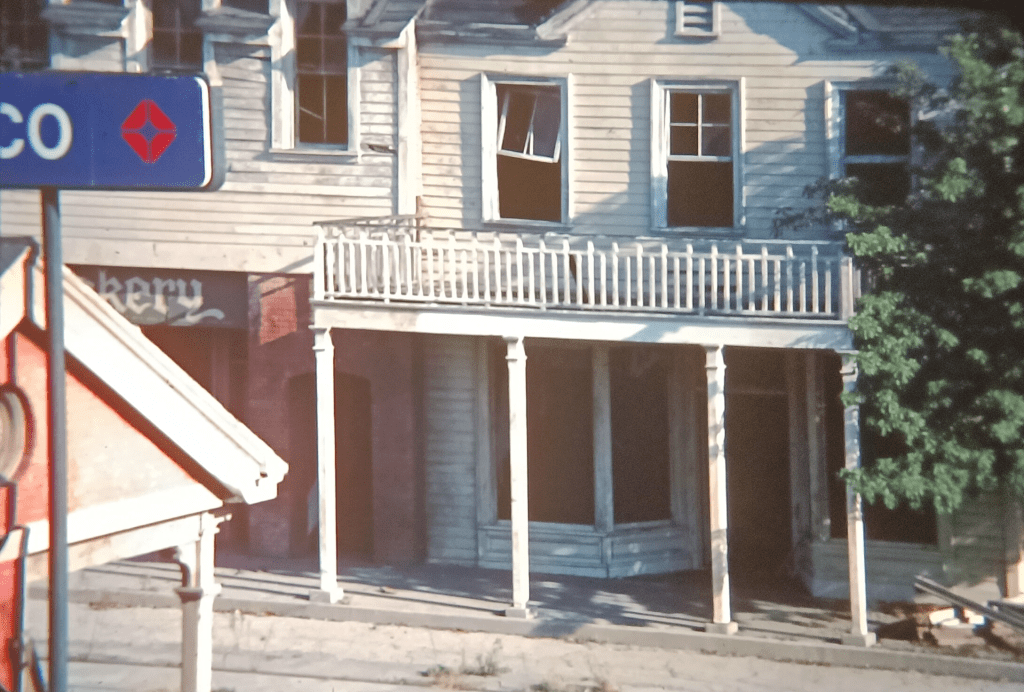 Pic left-balcony as on Hardy House but relocated for a set designed to block vision of other backlot sets. Heartland/Carvel about to be destroyed pictured right.