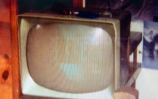 The channel knob broke so pliers sit on top of this set. The rabbit ears are short from continuous travel back and forth to the MGM lot. A coat hanger helps pulling in a signal from the Outer Limits – to The Hardy House.