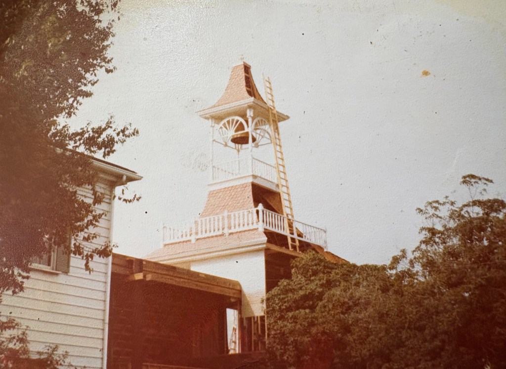 This Bell Tower replaced the Hardy home in 1977, sections of the home are spread out in Heartland.