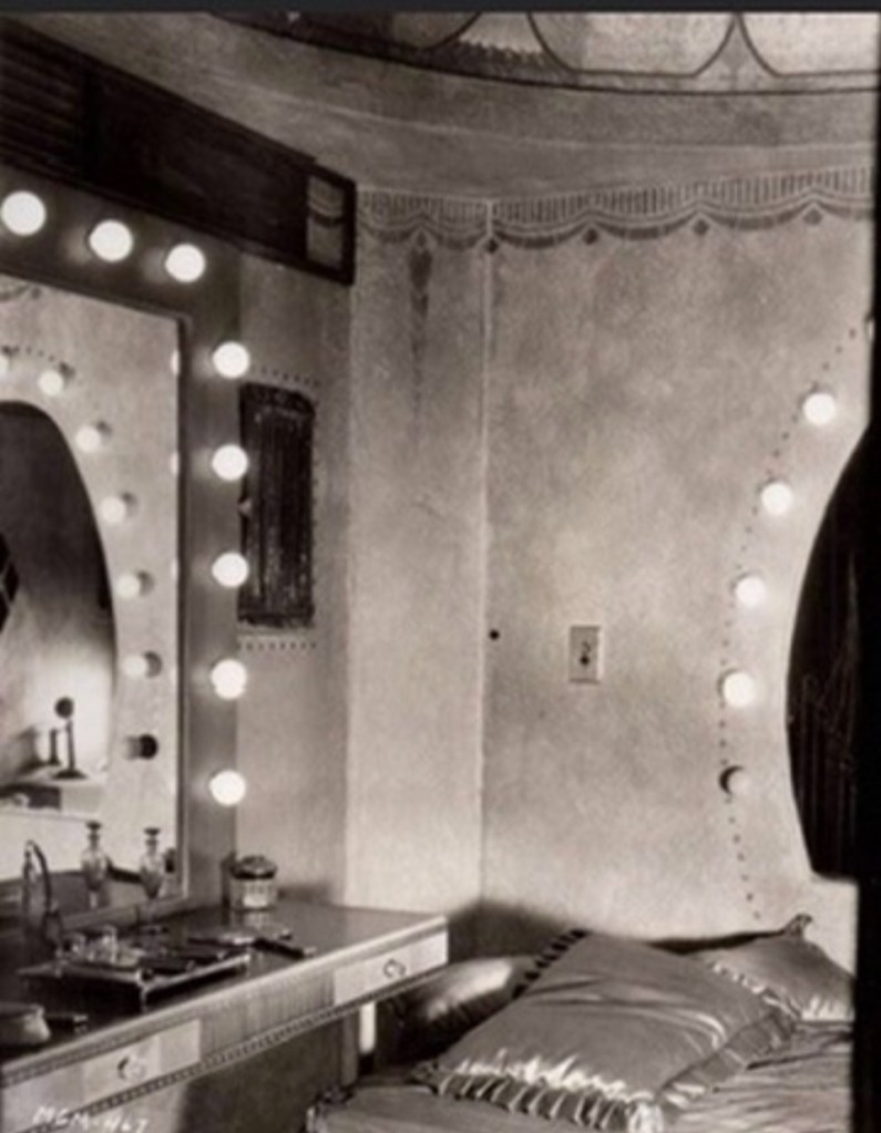Marion Davies and her original make up mirror from the silent film era. Key figures in her life recomposed in this mirror I’m the proud possessor of.this Magic Mirror, it is a portal back in time and the Holy Grail of Hollywood history. The bulbs are original with many colors for skin tone. Red, blue, and clear. When I powered this trailer up for the first time since 1970, everything came -Back to Life.