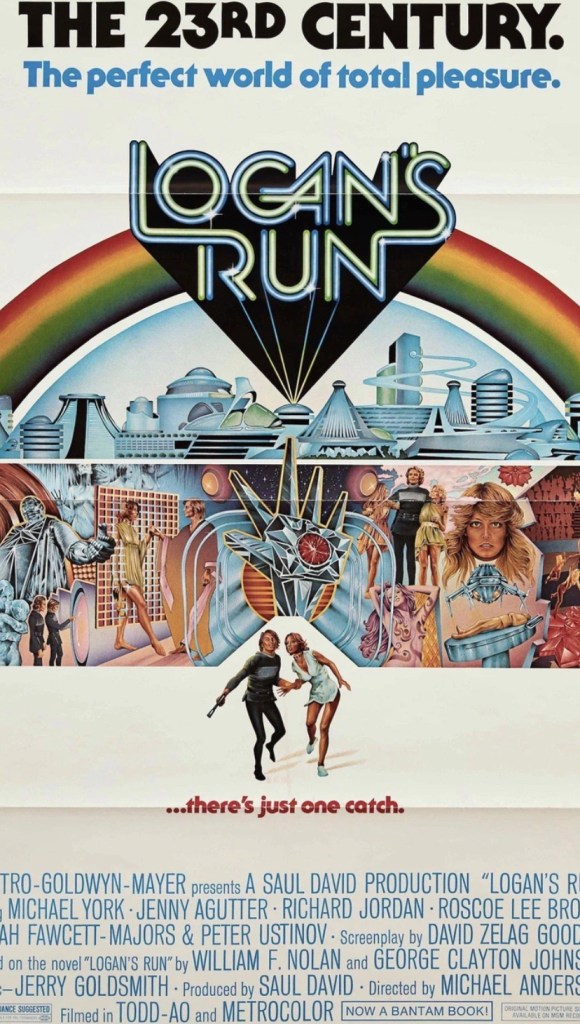 It’s across this street I’m headed next. I have my little bag of delights. I need to climb a fence. A billboard of Logan’s Run proudly displays itself there. Poor Farrah. She is getting shoe marks all over her face. Her skimpy outfit is marked too on her section of this advertisement board. It’s the only spot I can get over at… sorry Farrah!