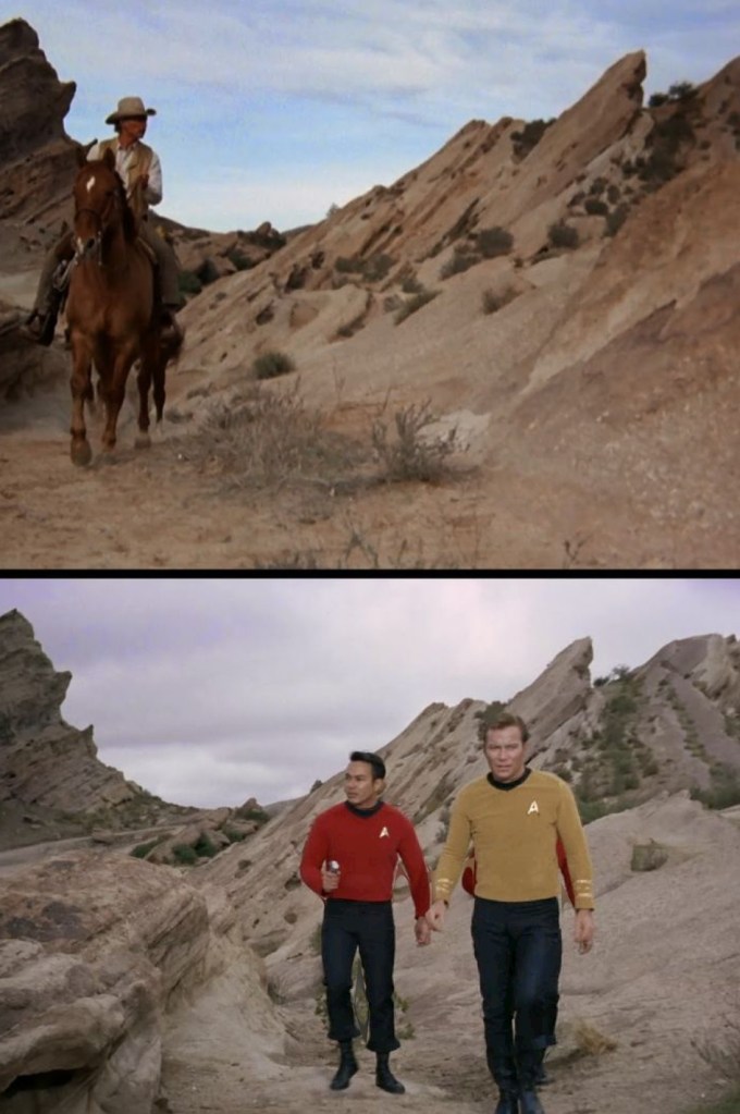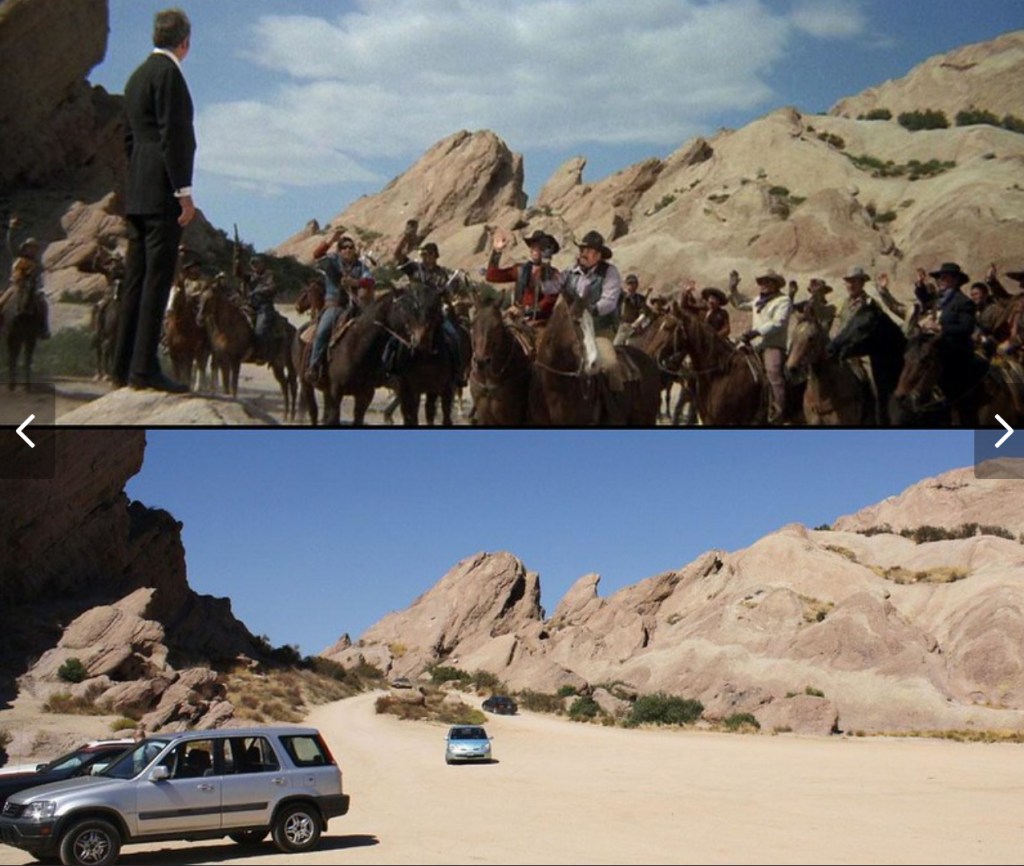 My last post was located on the Universal Backlot, featuring The Birds, in 1963. 21 miles away, these Zanti creatures were terrorizing MGM, by way of The Vasquez Rocks. MGM Lot 3 fits the landscape needed to match up those real rocks with sets built at MGM. Lot 3 is the most rustic backlot ever built.