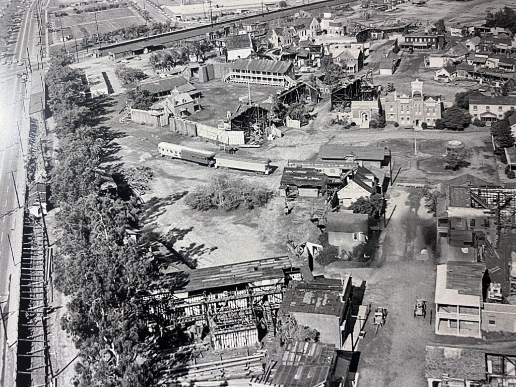 A 67-acre playground of bombed out European Villages, Western Towns… complete with blowing tumbleweeds, jungles with canoes, tall ships and even a paddleboat. Half-tracks, tanks, jeeps, trains and planes are parked everywhere. All these sets have a 1400-acre oil field directly behind it.