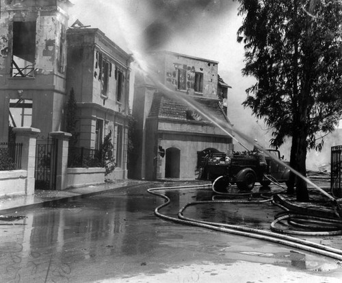 Water tank set on backlot-real homes across from studio on Hollywood Way