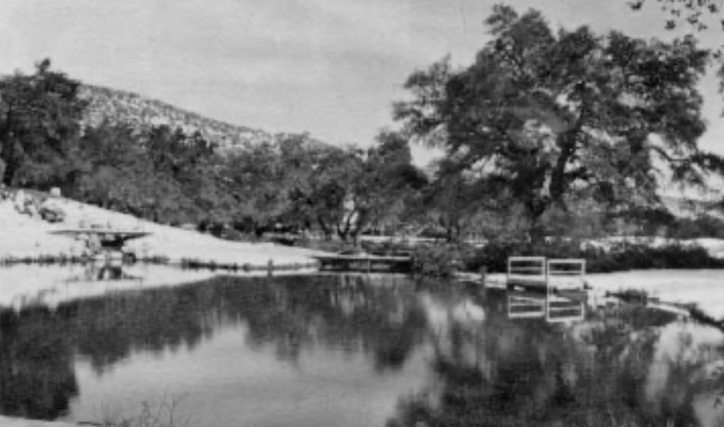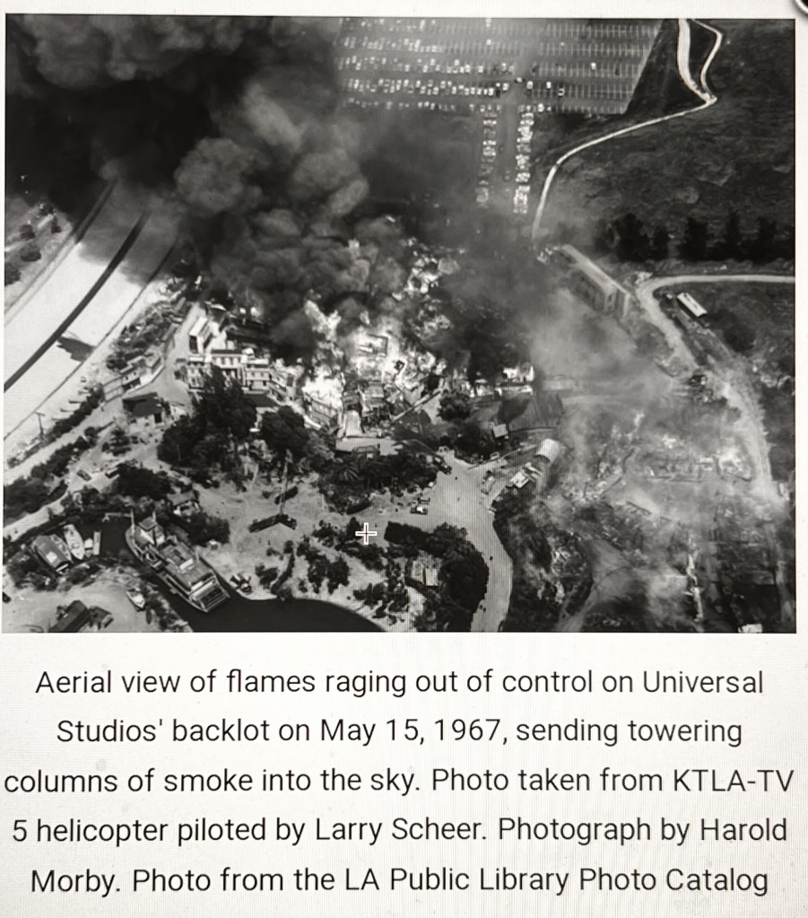 This corner was where we entered for over a decade, the parking lot of a shopping center. We would park here, listen to music and plot. That’s the water tank, surrounded by scaffolding. Actors swim inside as cameras film from windows. Universal and MGM also had these heavy duty steel drum sets. Esther Williams made her living in one of these at MGM. Plus she had a deep pool to dive into…