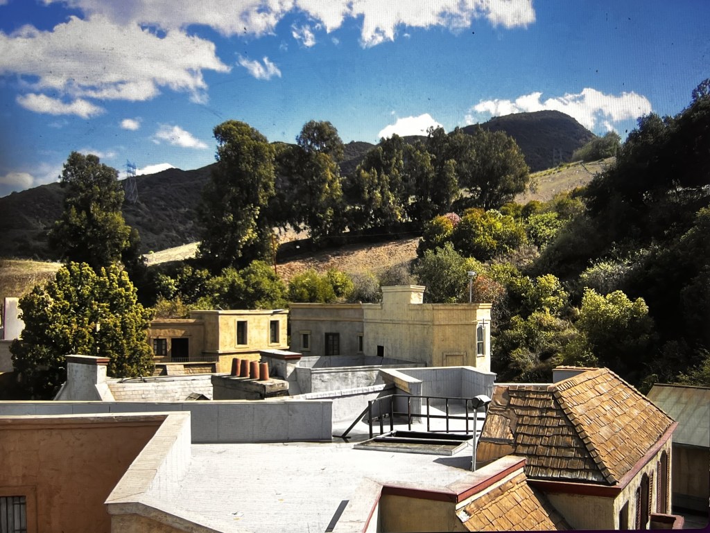 Much of this interior ascension upwards is in Braille- meaning you can’t see. Slowly proceed up each step, making sure- there is a step. Just because- it’s long fall the higher you go. The rooftop is our sanctuary. It overlooks the entire backlot, this set is in the middle of the backlot with very long distances in each direction to reach safety if being chased. Anythings possible, but no time to worry, rather time to celebrate…No risk-No reward moment!