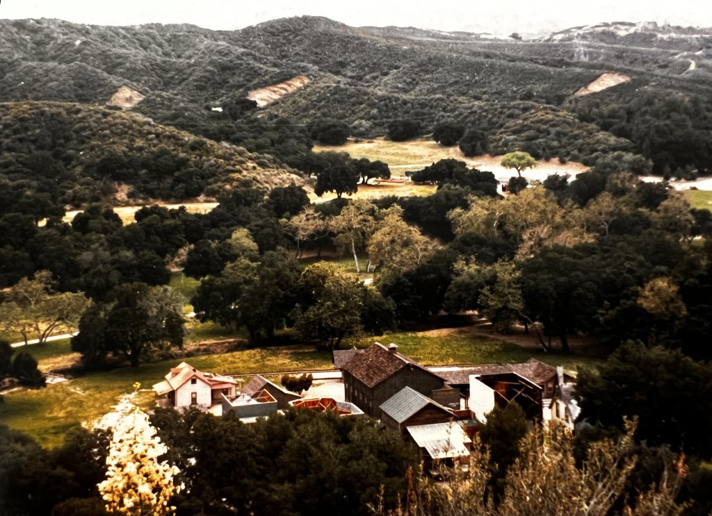 Steel structure contained hand props, really cool stuff inside. Trees in back of frame is where Fantasy Island-studio version of Queen Anne Cottage in Arcadia, California. A seldom used nearby location. This ranch reproduced that location.